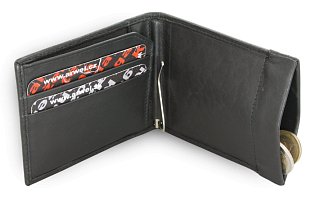 Pružina pro uchycení bankovek, 2 kapsy na kreditní karty, 1 vnitřní kapsa a pružinová kapsa na mince.